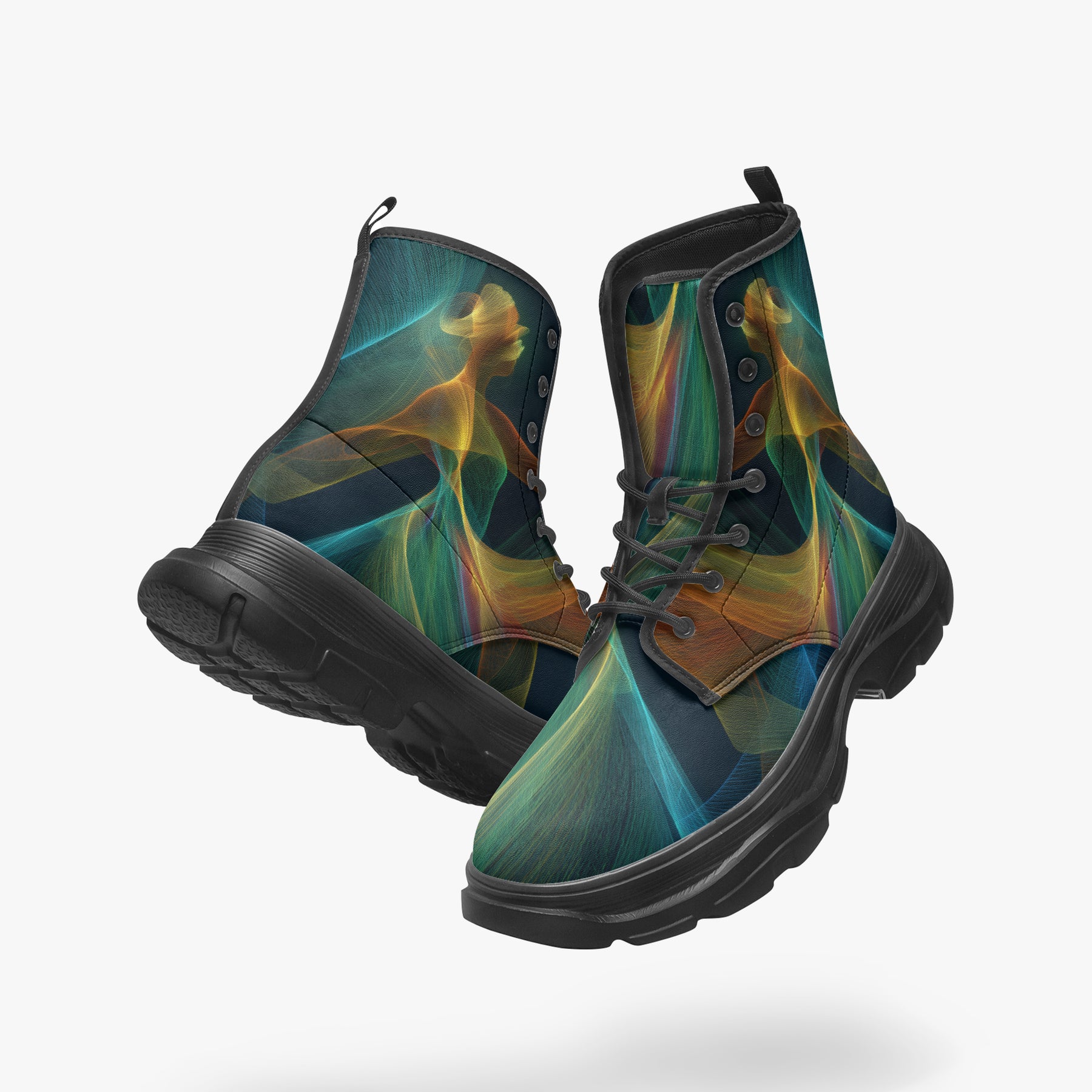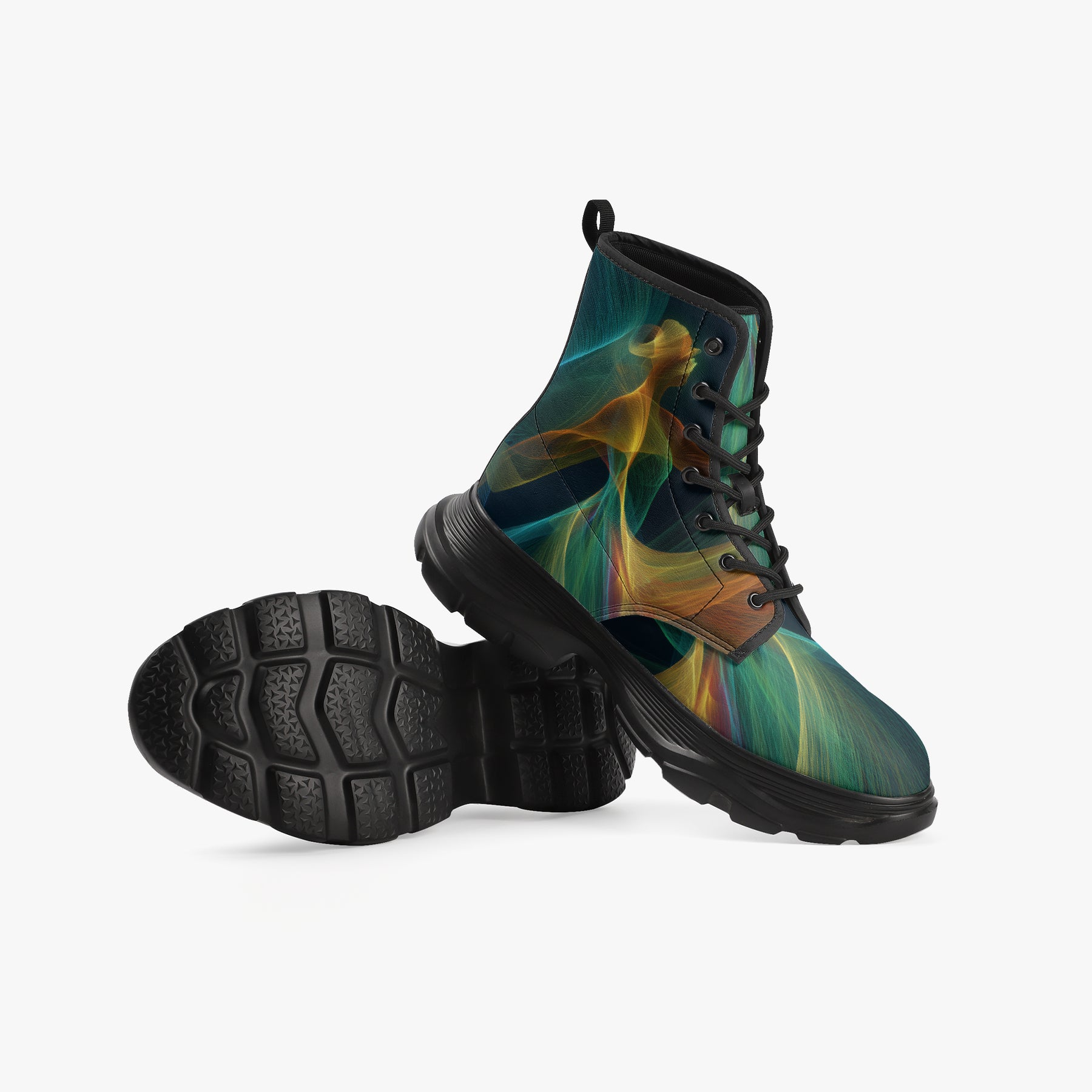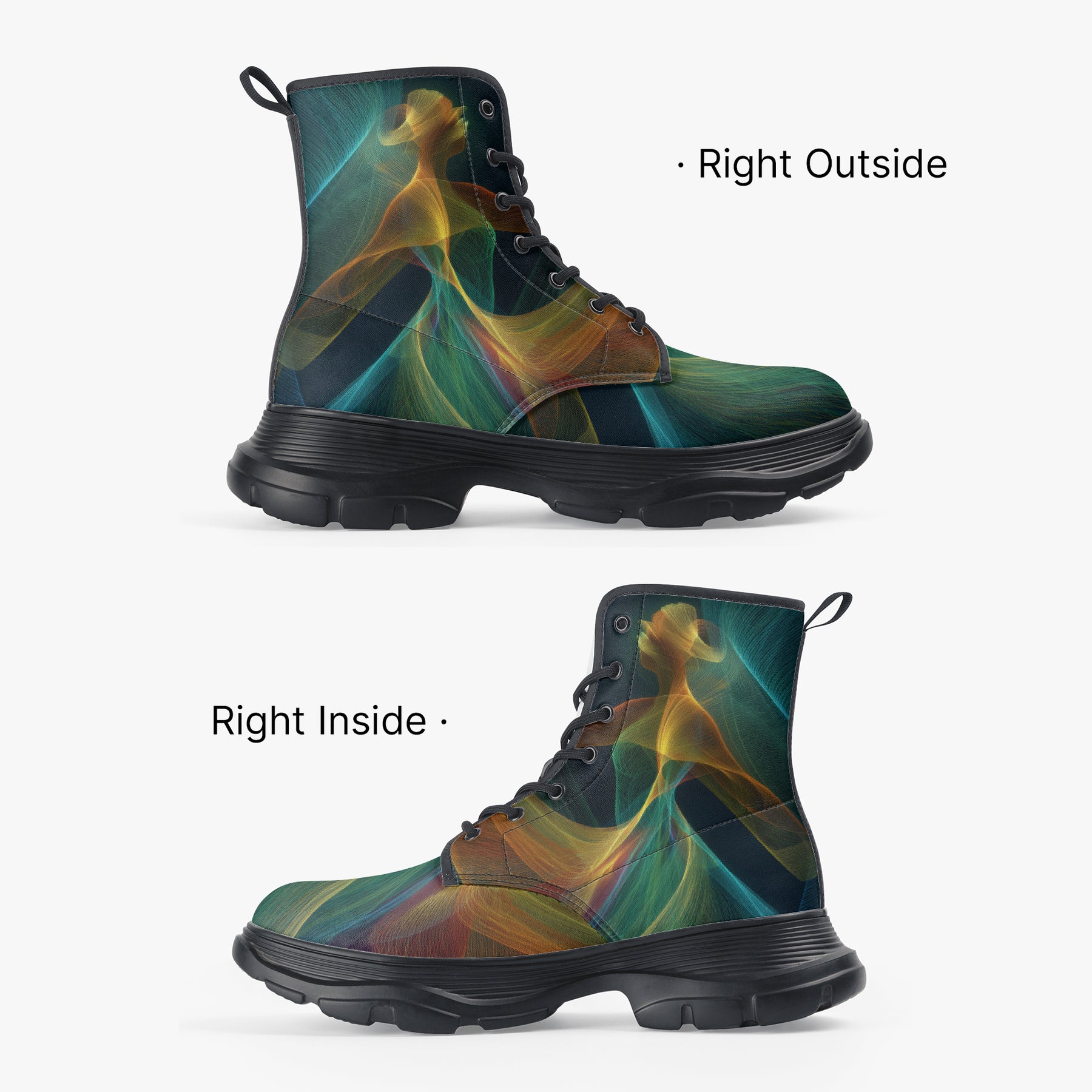 Our iconic, custom-made boots are designed to stand out while delivering exceptional quality and comfort. Made from 100% vegan leather, they’re stylish, durable, and perfect for any occasion, any season, and any outfit. Featuring a double-sided vibrant print, a lace-up closure for a secure fit, and a soft textile lining for maximum comfort, these boots are as practical as they are eye-catching. The high-quality rubber outsole with a steel shank ensures durability and traction, while the removable insole allows for a personalized fit. Designed true to size, they accommodate wider feet with ease. Every pair is handcrafted to the highest standards, made just for you.
