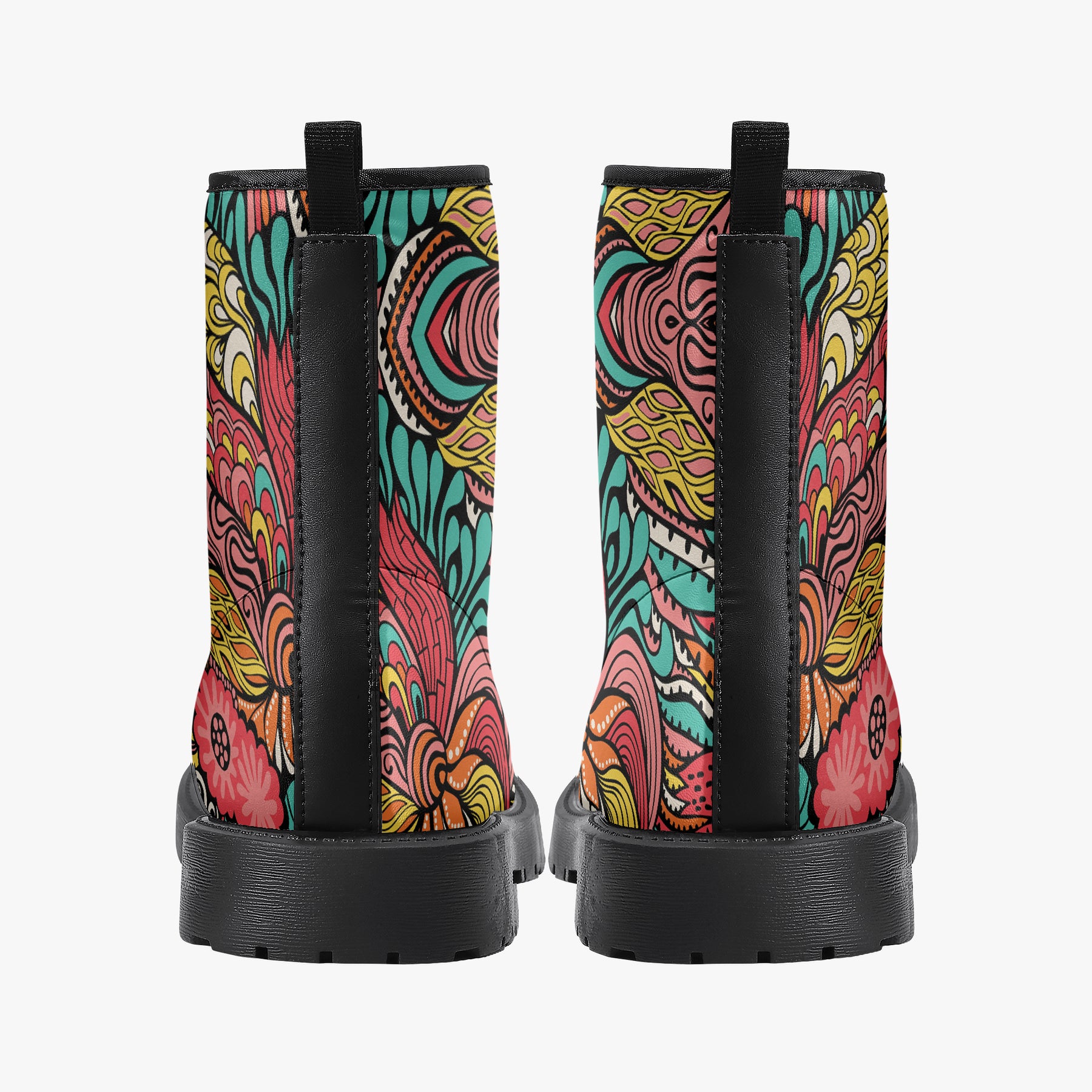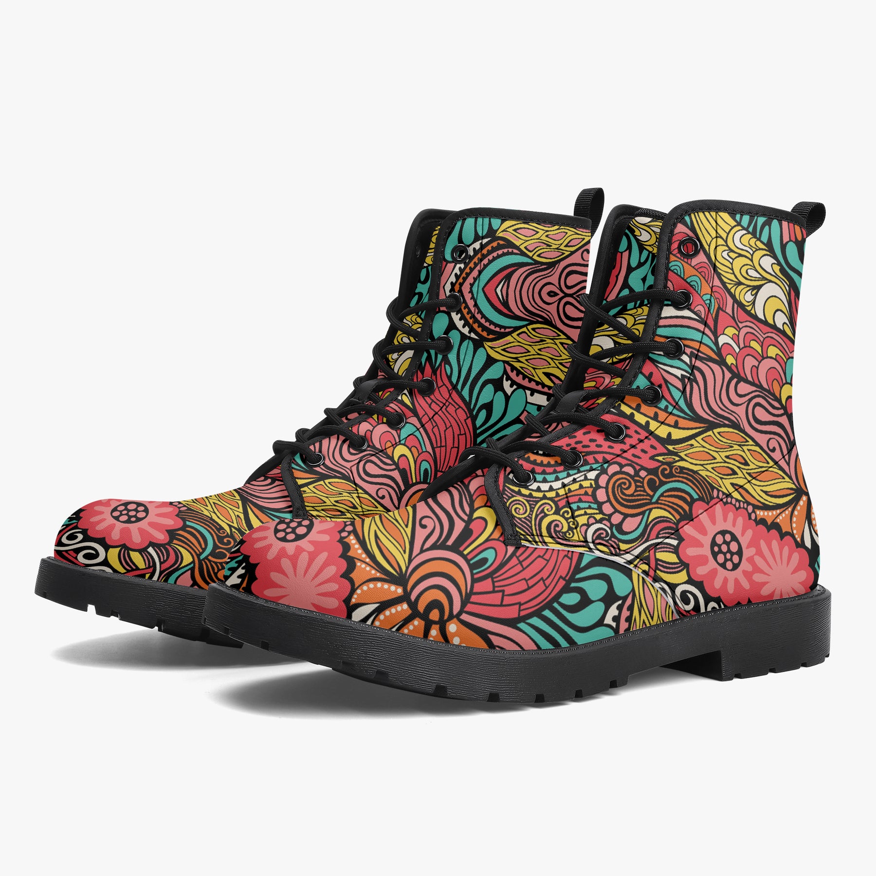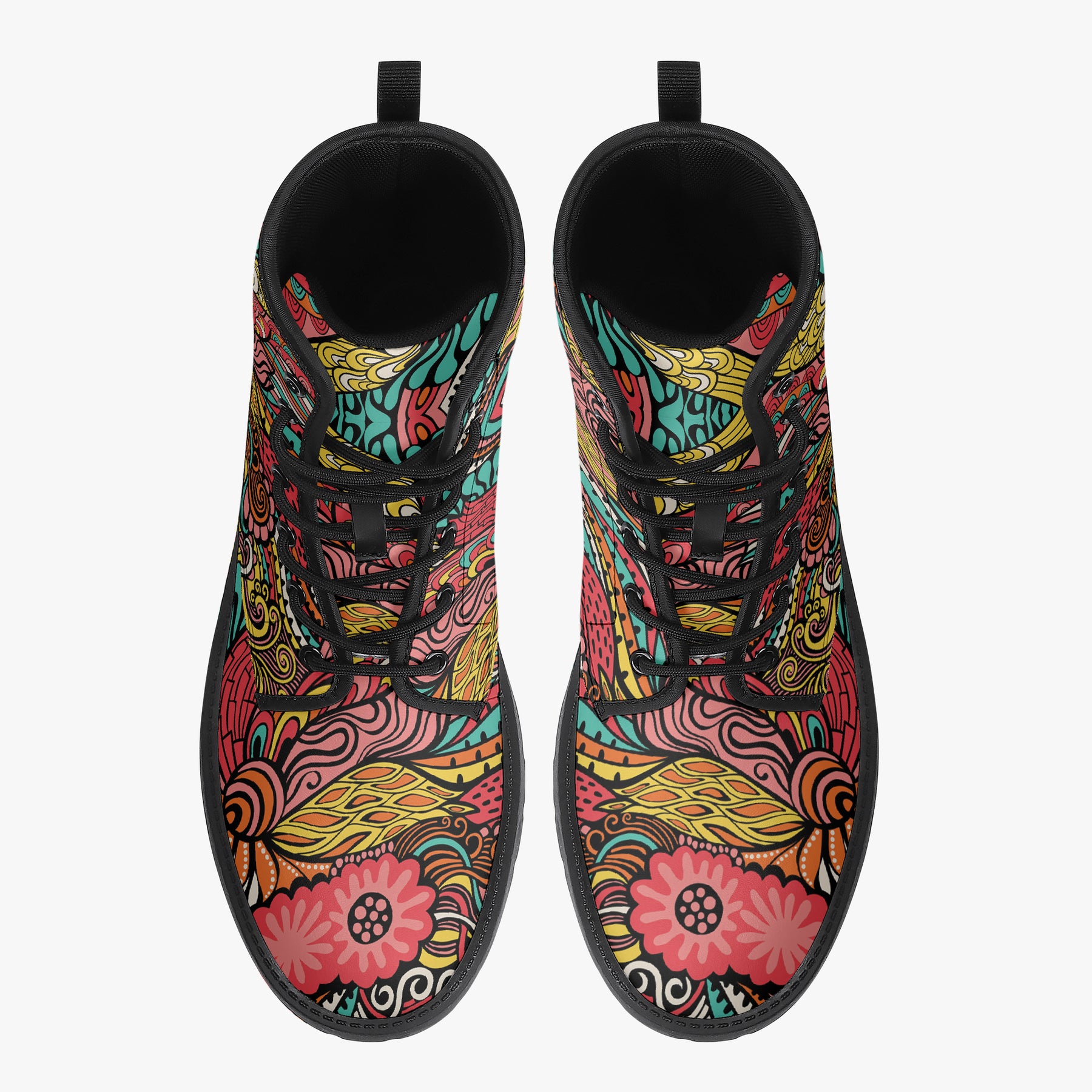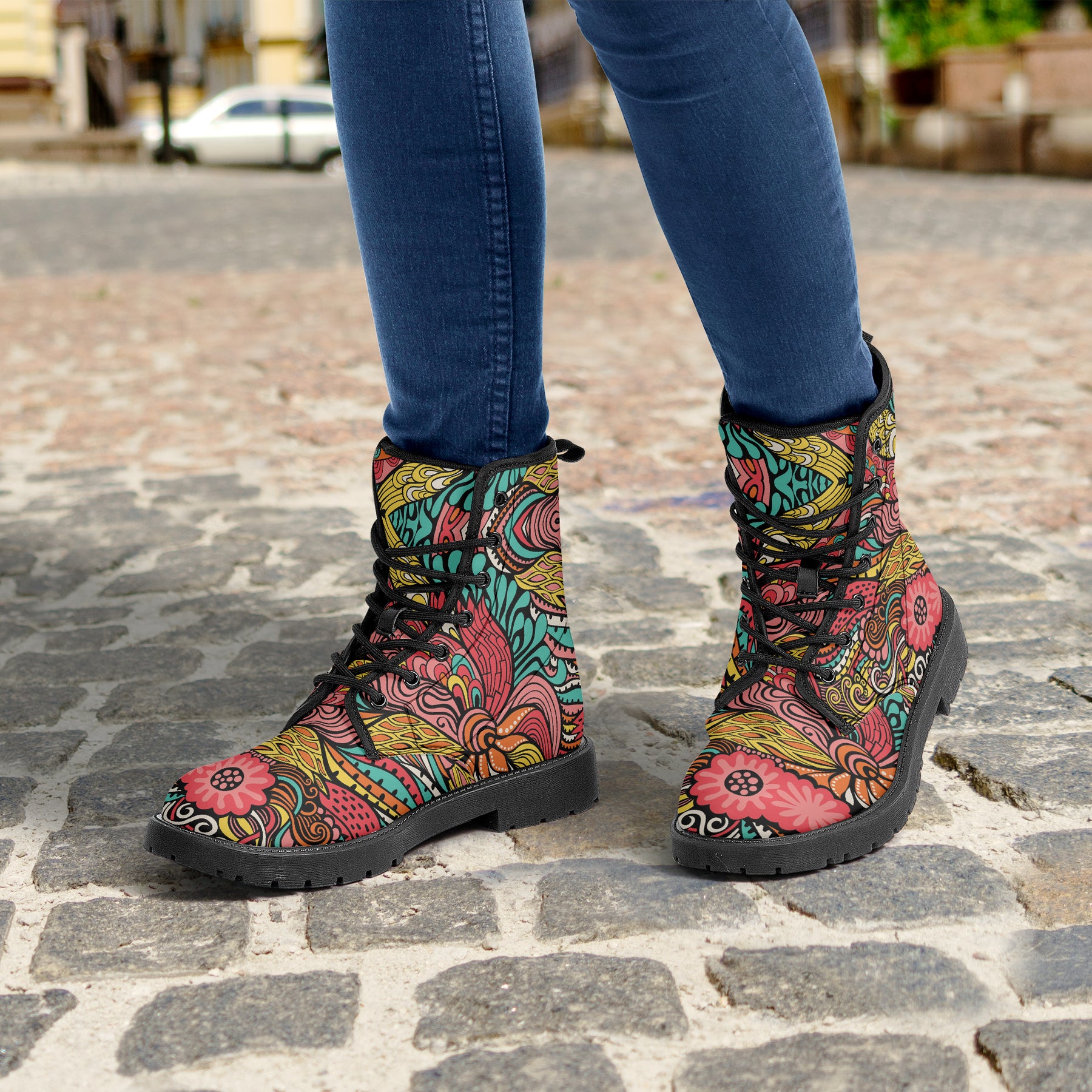 Our iconic, custom-made boots are designed to stand out while delivering exceptional quality and comfort. Made from 100% vegan leather, they’re stylish, durable, and perfect for any occasion, any season, and any outfit. Featuring a double-sided vibrant print, a lace-up closure for a secure fit, and a soft textile lining for maximum comfort, these boots are as practical as they are eye-catching. The high-quality rubber outsole with a steel shank ensures durability and traction, while the removable insole allows for a personalized fit. Designed true to size, they accommodate wider feet with ease. Every pair is handcrafted to the highest standards, made just for you.
